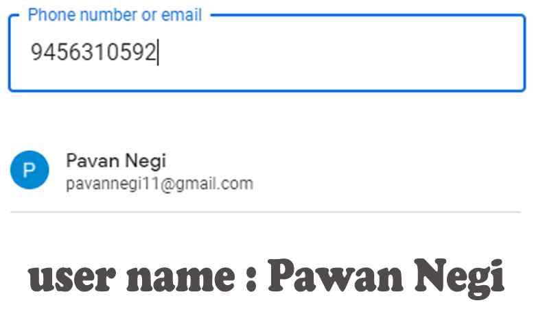 After that google will show you Gmail account which connected with this number, you can easily get user name of this. I will be explained below